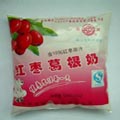 適用:本包裝件適用于醬油、醋、果汁、牛奶等液體,采用0.08mm聚乙烯薄膜,其成型、制袋、定量灌裝、油墨印字、封口切斷等過程全部自動進行,薄膜在包裝前進行紫外線消毒,符合食品衛(wèi)生的要求。