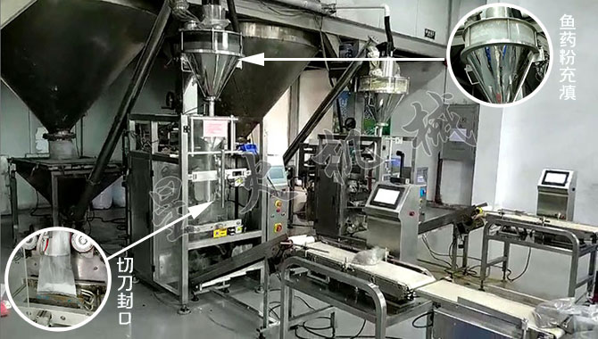魚藥粉包裝機(jī)生產(chǎn)現(xiàn)場-設(shè)備細(xì)節(jié)展示: