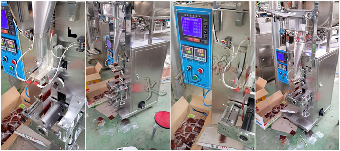 外賣辣椒油包裝機-調味辣椒油包裝機生產現場: