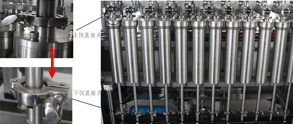 2、單排布置設(shè)計的活塞缸及其上、下快裝連接固定方式,可很方便地將整個活塞缸單元拆下清洗或更換活塞密封件,避免了活塞直接拉出缸體更換活塞密封件時物料的泄漏,造成對設(shè)備的污染。目前只有這種結(jié)構(gòu),才能真正的起到防止更換活塞密封件時物料的泄漏,提高了設(shè)備的安全性和對操作工的保護。