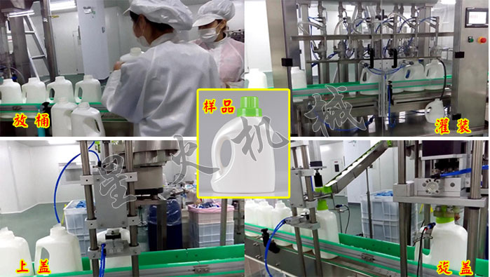 由于,洗衣液主要成分是非離子表面活性劑,去污能力強(qiáng),并且能夠深入衣物纖維內(nèi)部發(fā)揮洗滌作用,去污更徹底。所以當(dāng)前市場(chǎng)上洗衣液開始占據(jù)更大的市場(chǎng),更受到消費(fèi)者們的喜愛(ài)。當(dāng)然為了滿足來(lái)自消費(fèi)者們的需求,生產(chǎn)廠家在洗衣液的生產(chǎn)上也需要謹(jǐn)慎,那么就洗衣液桶裝的灌裝和旋蓋生產(chǎn)來(lái)說(shuō),選擇怎樣的灌裝旋蓋機(jī)才是很合適的呢?